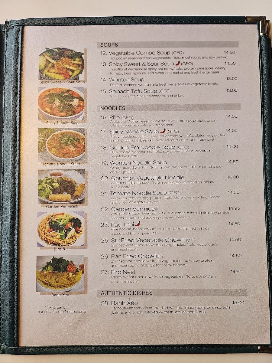 Your dining experience at Golden Era wouldn’t be complete without a taste of their exquisite beverages. Don’t miss out on the rich and aromatic Organic Vietnamese Iced Coffee or the refreshing Thai Iced Tea, each crafted to perfectly complement your meal. And for a sweet finish, their desserts, including a surprising vegan cheesecake, have won over countless hearts, offering an indulgence that's hard to resist.